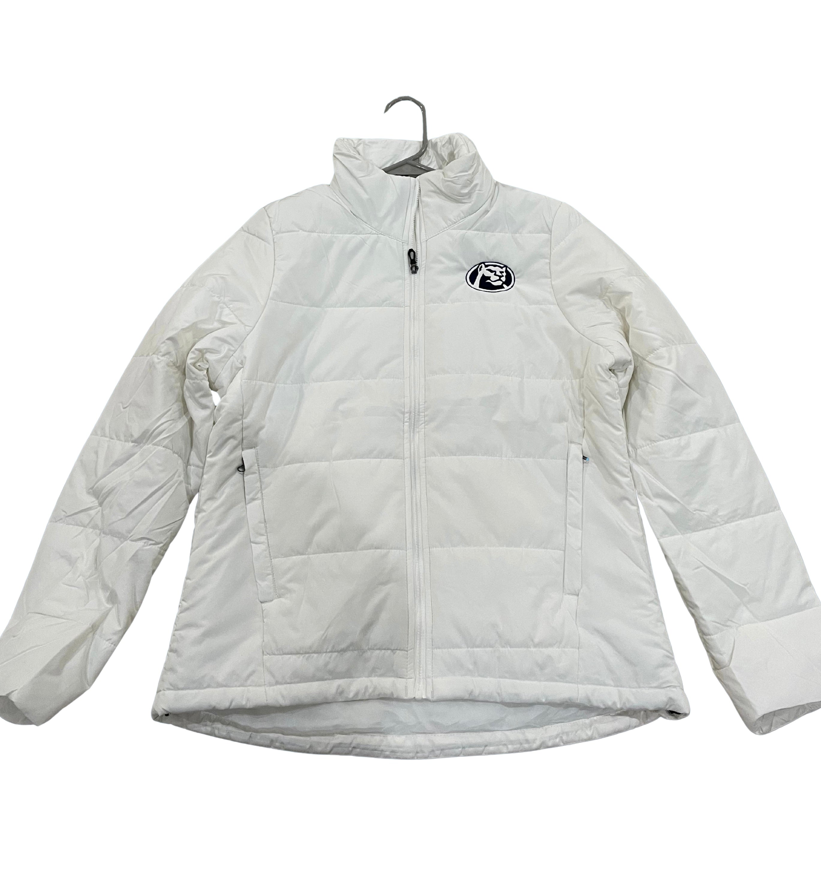 White jacket with Navy Cougar head logo