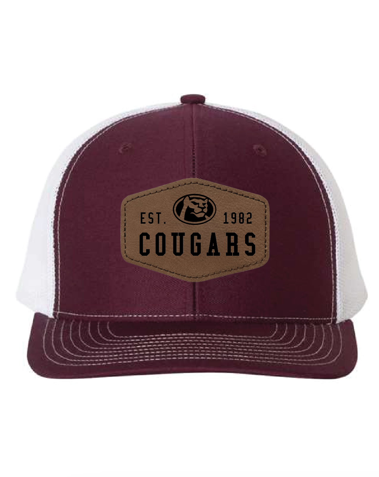 Hat- Snapback Trucker Cap - Maroon with Leather Patch